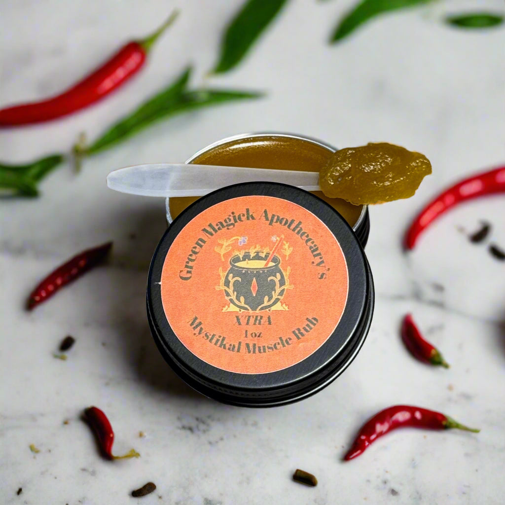 When life leaves you feeling heavy or tight, you need more than surface-level care—you need a balm born of botanicals and built with intention. Mystikal Muscle Rub XTRA is a rich, fiery blend of 12 herbs and essential oils, infused into a creamy balm base. Designed to bring warmth, invigoration, and grounding, it’s handcrafted in small batches for those who love a stronger herbal touch.